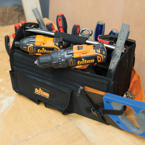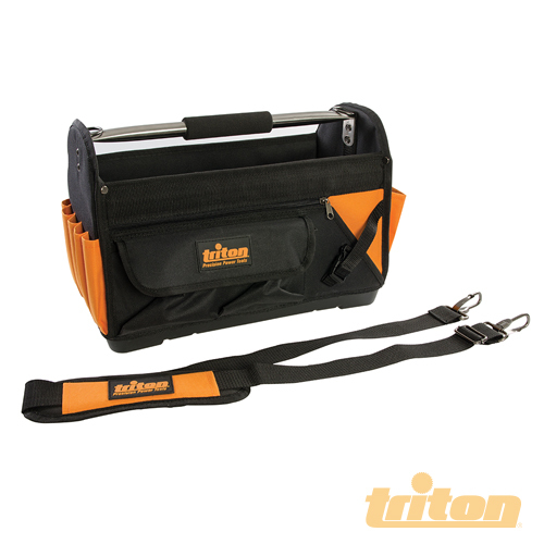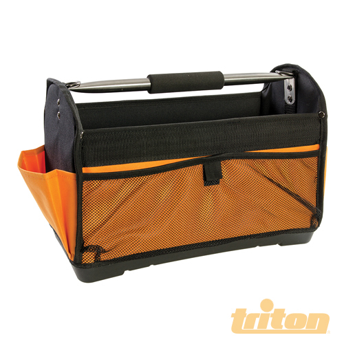 - Tøff Triton verktøy bag i forsterket polyester, med hard base og skum grep aluminium bærehåndtak . Har en stor separat nettinglomme for verktøy og en justerbar skulderstropp for komfortabel transport. Størrelse 400 x 190 x 280mm